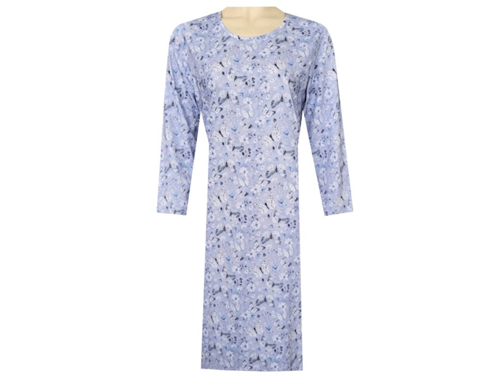Dámská noční košile má výstřih do U. Rukávy jsou dlouhé.