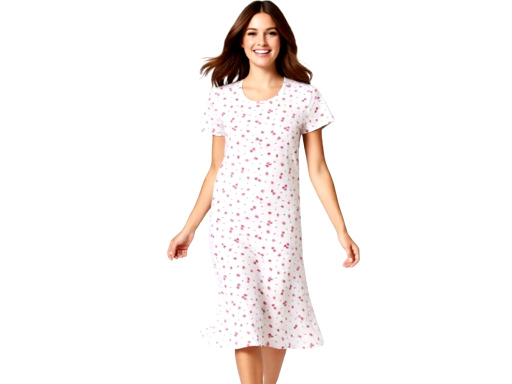 Dámská noční košile má výstřih do U. Rukávy jsou dlouhé.
