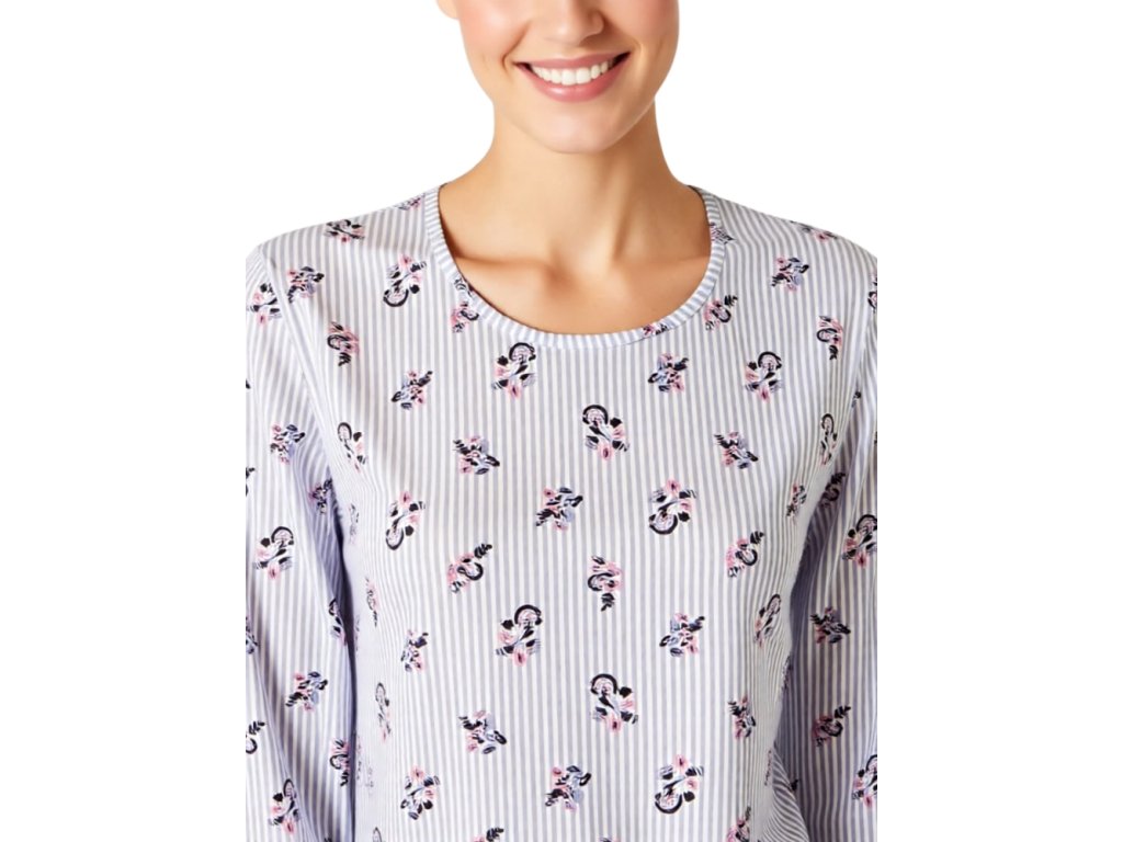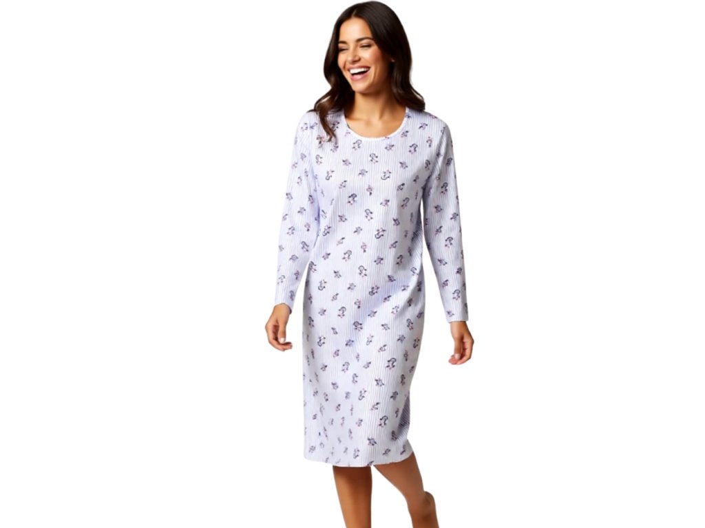 Dámská noční košile má výstřih do U. Rukávy jsou dlouhé.