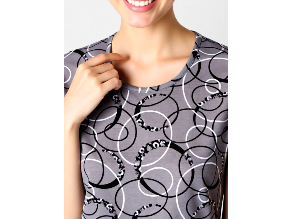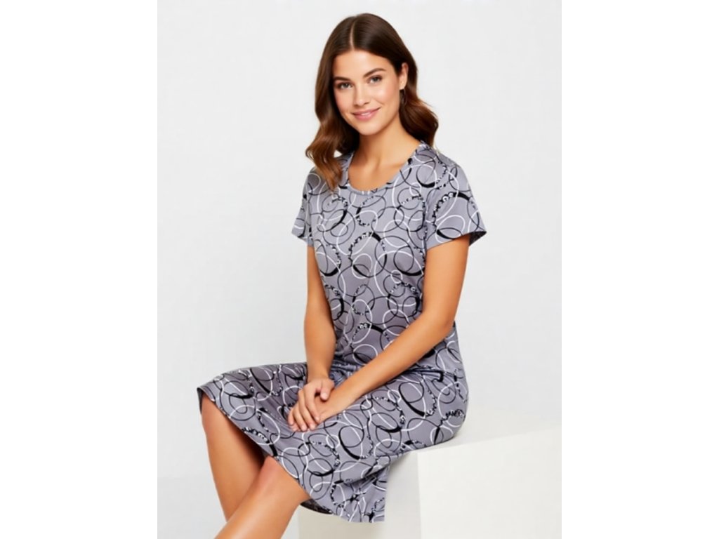 Dámská noční košile má výstřih do U. Rukávy jsou dlouhé.