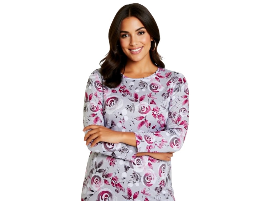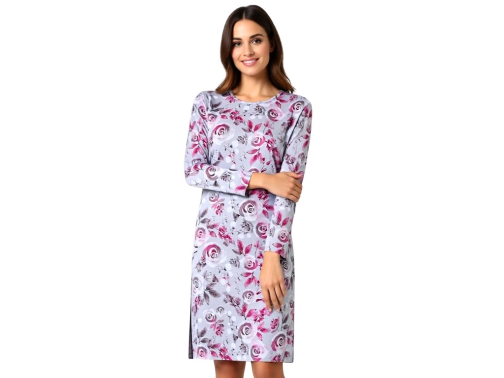 Dámská noční košile má výstřih do U. Rukávy jsou dlouhé.