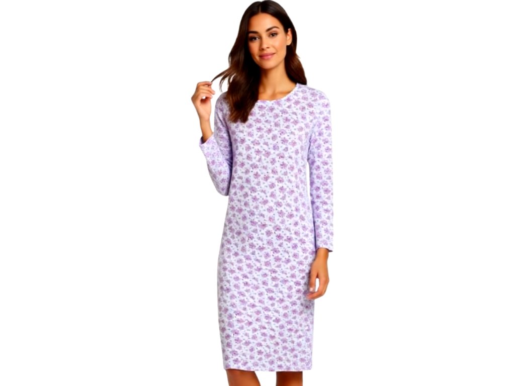 Dámská noční košile má výstřih do U. Rukávy jsou dlouhé.