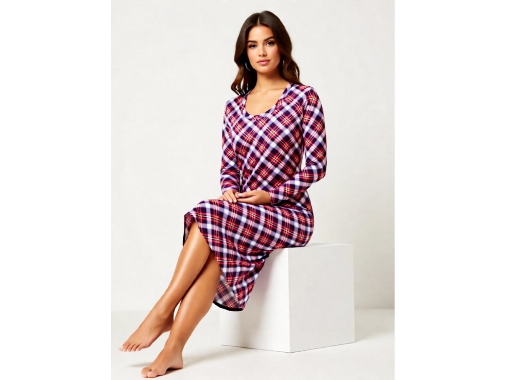Dámská noční košile má výstřih do U. Rukávy jsou dlouhé.