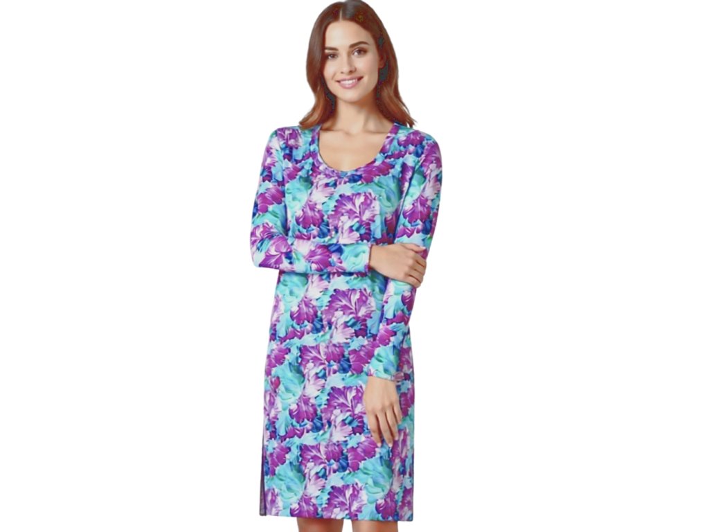 Dámská noční košile má výstřih do U. Rukávy jsou dlouhé.