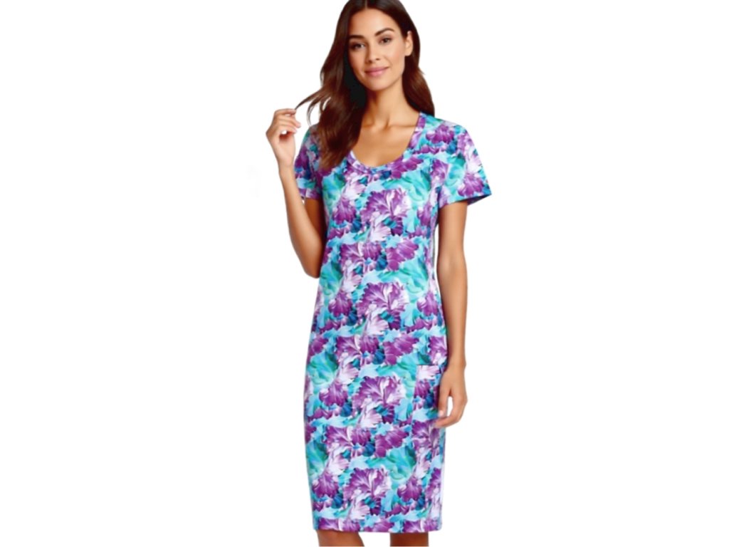 Dámská noční košile má výstřih do U. Rukávy jsou dlouhé.