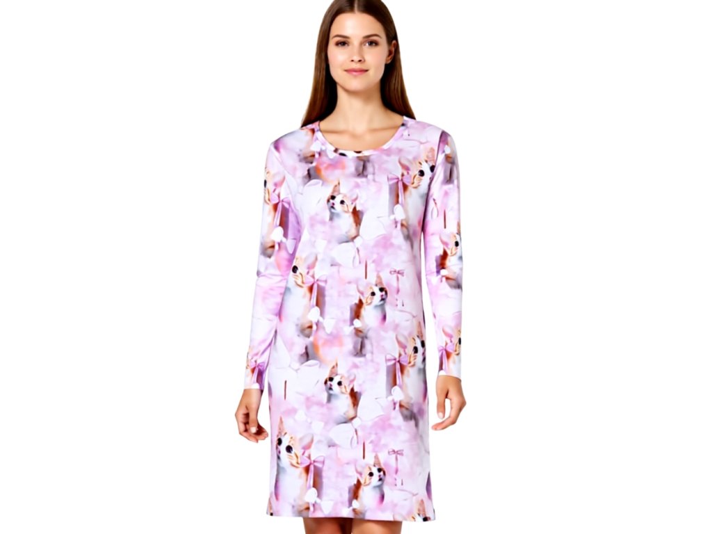 Dámská noční košile má výstřih do U. Rukávy jsou dlouhé.