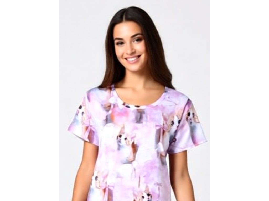 Dámská noční košile má výstřih do U. Rukávy jsou dlouhé.