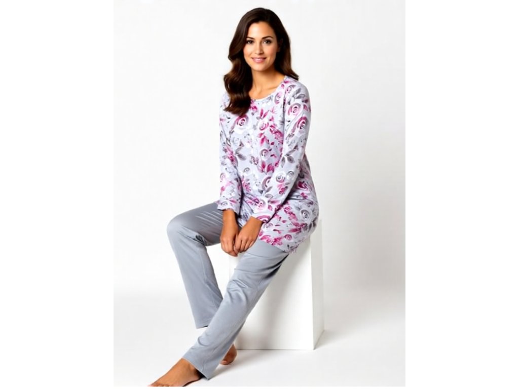 Dámské pyžamo dlouhé je vyrobeno z jemně česaného.