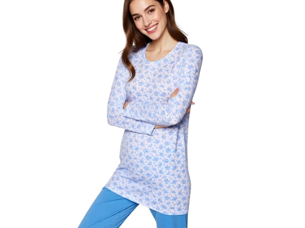 Dámské pyžamo dlouhé je vyrobeno z jemně česaného.