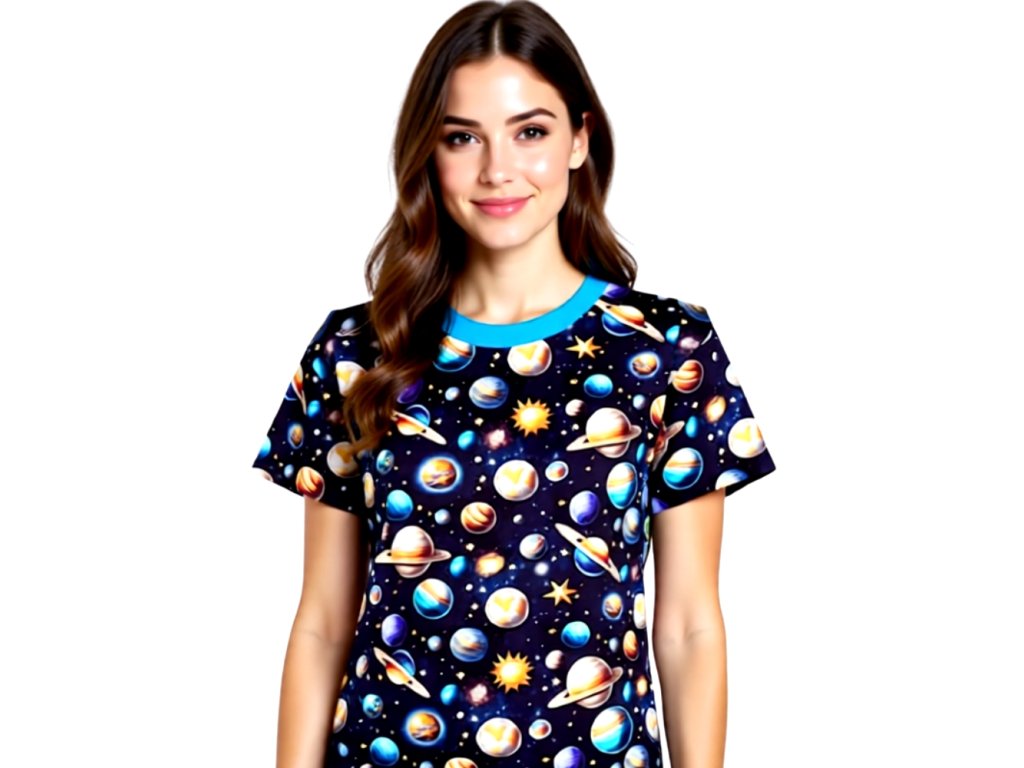 Vrchní díl má výstřih do U. Rukávy jsou krátké.