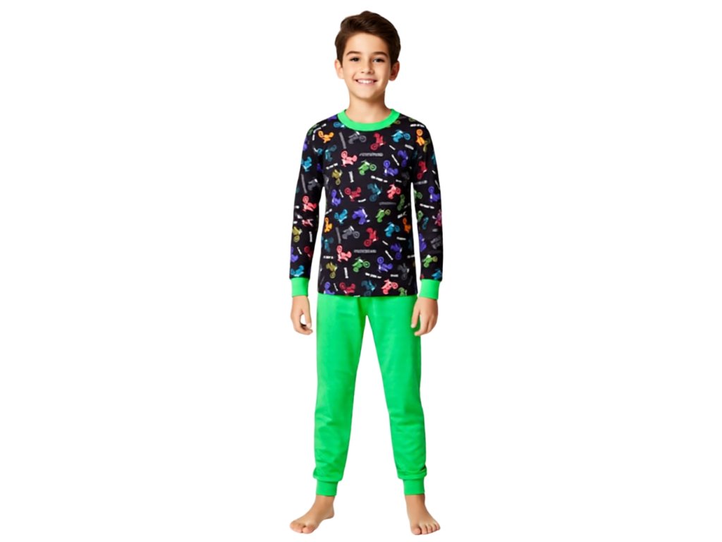 Dětské pyžamo úplet to je kvalitní pyžamo od firmy Foltýn. Moderní střih zaručující maximální pohodlnost. Vrchní díl má výstřih do U. Kalhoty jsou volné, v pase opatřené gumou v tunýlku, která se dá vyměnit. Dětské pyžamo úplet je vyrobeno z jemně česaného bavlněného úpletu ze 100 % bavlny. Tento materiál je vzdušný a velice příjemný. Způsob ošetřování: praní na 40°C, žehlení.