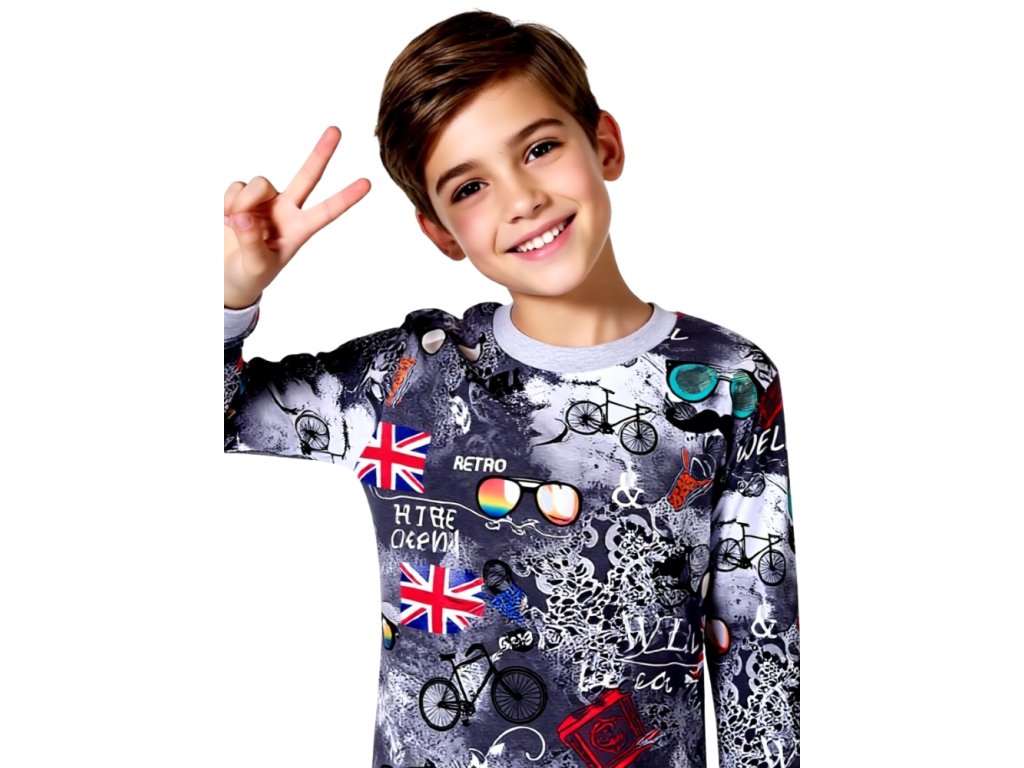 Dětské pyžamo úplet to je kvalitní pyžamo od firmy Foltýn. Moderní střih zaručující maximální pohodlnost. Vrchní díl má výstřih do U. Kalhoty jsou volné, v pase opatřené gumou v tunýlku, která se dá vyměnit. Dětské pyžamo úplet je vyrobeno z jemně česaného bavlněného úpletu ze 100 % bavlny. Tento materiál je vzdušný a velice příjemný. Způsob ošetřování: praní na 40°C, žehlení.