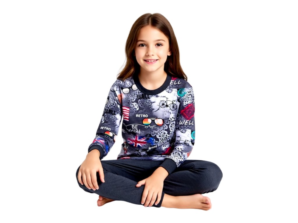 Dětské pyžamo úplet to je kvalitní pyžamo od firmy Foltýn. Moderní střih zaručující maximální pohodlnost. Vrchní díl má výstřih do U. Kalhoty jsou volné, v pase opatřené gumou v tunýlku, která se dá vyměnit. Dětské pyžamo úplet je vyrobeno z jemně česaného bavlněného úpletu ze 100 % bavlny. Tento materiál je vzdušný a velice příjemný. Způsob ošetřování: praní na 40°C, žehlení.