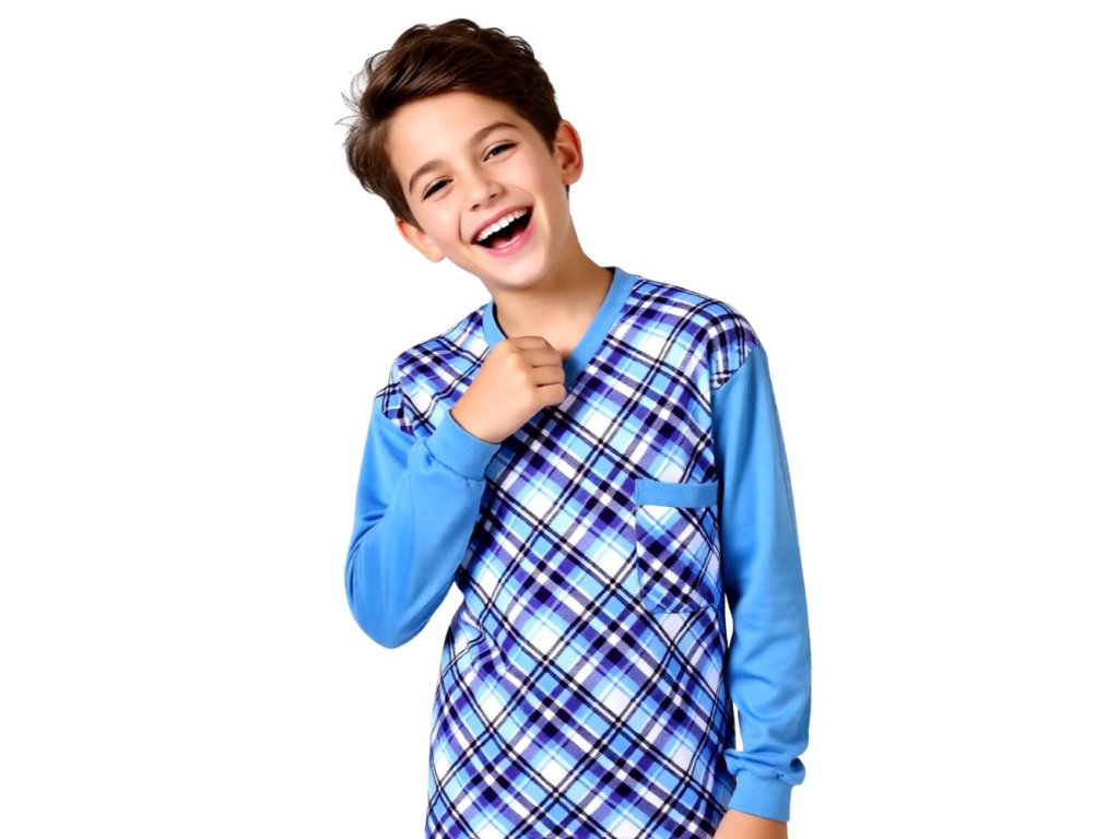 Dětské pyžamo úplet to je kvalitní pyžamo od firmy Foltýn. Moderní střih zaručující maximální pohodlnost. Vrchní díl má výstřih do U. Kalhoty jsou volné, v pase opatřené gumou v tunýlku, která se dá vyměnit. Dětské pyžamo úplet je vyrobeno z jemně česaného bavlněného úpletu ze 100 % bavlny. Tento materiál je vzdušný a velice příjemný. Způsob ošetřování: praní na 40°C, žehlení.
