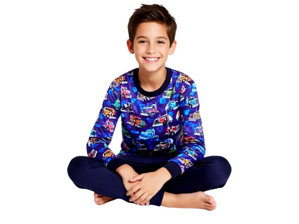 Dětské pyžamo úplet to je kvalitní pyžamo od firmy Foltýn. Moderní střih zaručující maximální pohodlnost. Vrchní díl má výstřih do U. Kalhoty jsou volné, v pase opatřené gumou v tunýlku, která se dá vyměnit. Dětské pyžamo úplet je vyrobeno z jemně česaného bavlněného úpletu ze 100 % bavlny. Tento materiál je vzdušný a velice příjemný. Způsob ošetřování: praní na 40°C, žehlení.