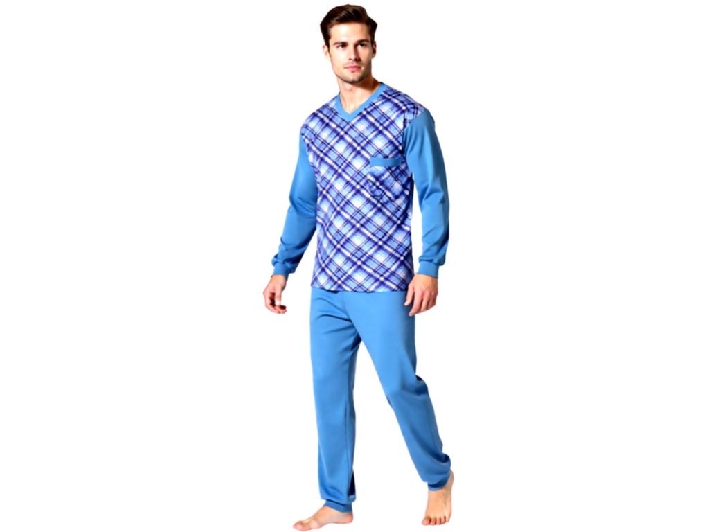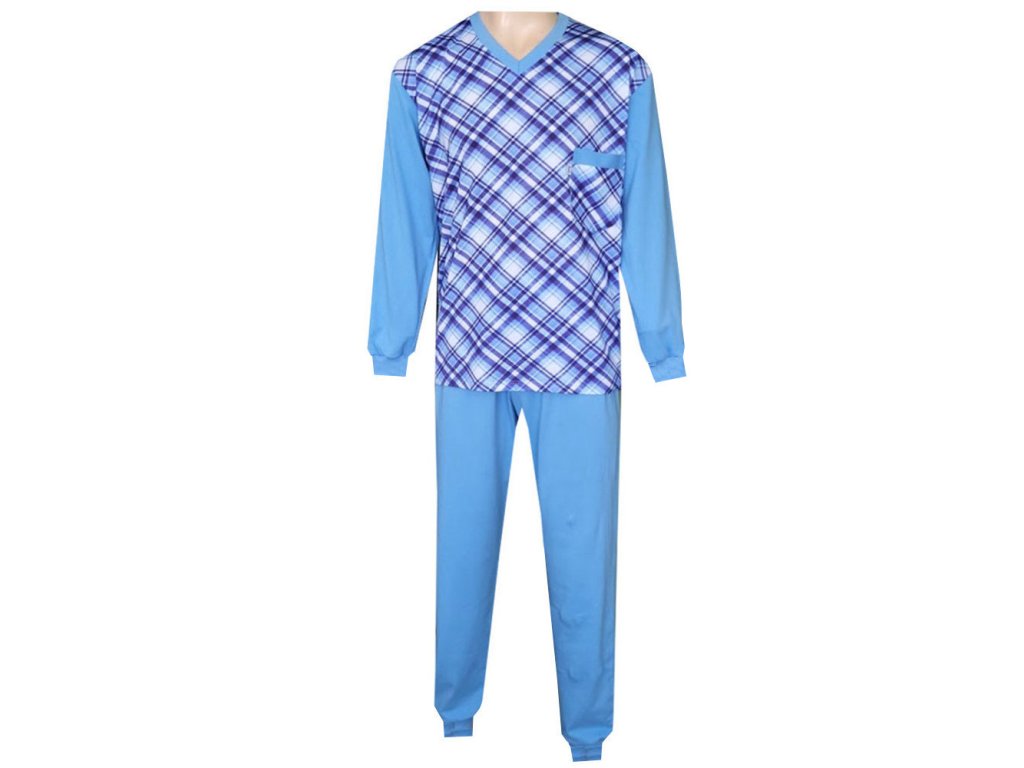 Pánské pyžamo úplet dlouhé to je kvalitní pánské pyžamo od firmy Foltýn. Moderní střih zaručující maximální pohodlnost a eleganci. Vrchní díl má výstřih do V. Kalhoty jsou volné. V pase opatřené gumou v tunýlku, která se dá vyměnit. Pánské pyžamo úplet dlouhé je vyrobeno z jemně česaného bavlněného úpletu ze 100 % bavlny. Tento kvalitní materiál je vzdušný a velice příjemný. Způsob ošetřování: praní na 40°C, žehlení.