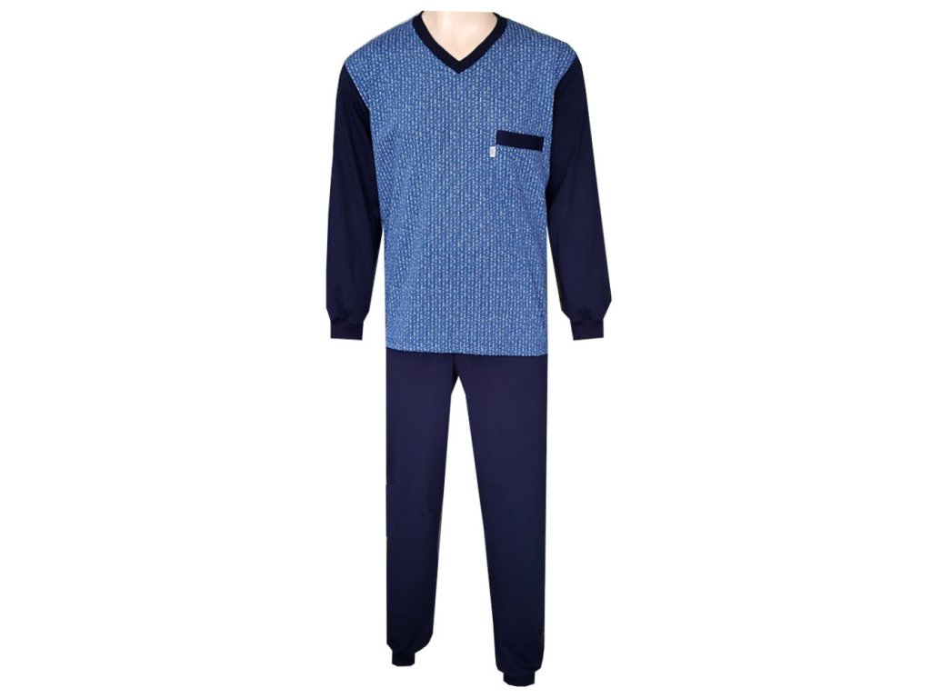 Pánské pyžamo úplet dlouhé to je kvalitní pánské pyžamo od firmy Foltýn. Moderní střih zaručující maximální pohodlnost a eleganci. Vrchní díl má výstřih do V. Kalhoty jsou volné. V pase opatřené gumou v tunýlku, která se dá vyměnit. Pánské pyžamo úplet dlouhé je vyrobeno z jemně česaného bavlněného úpletu ze 100 % bavlny. Tento kvalitní materiál je vzdušný a velice příjemný. Způsob ošetřování: praní na 40°C, žehlení.