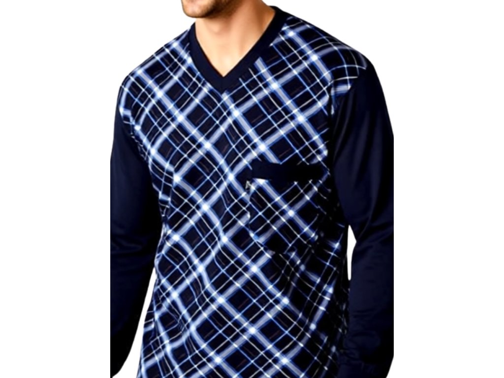 Pánské pyžamo úplet dlouhé to je kvalitní pánské pyžamo od firmy Foltýn. Moderní střih zaručující maximální pohodlnost a eleganci. Vrchní díl má výstřih do V. Kalhoty jsou volné. V pase opatřené gumou v tunýlku, která se dá vyměnit. Pánské pyžamo úplet dlouhé je vyrobeno z jemně česaného bavlněného úpletu ze 100 % bavlny. Tento kvalitní materiál je vzdušný a velice příjemný. Způsob ošetřování: praní na 40°C, žehlení.
