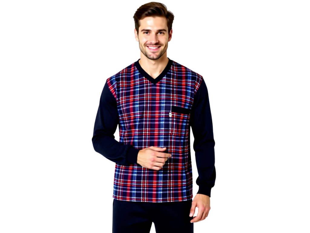 Pánské pyžamo úplet dlouhé to je kvalitní pánské pyžamo od firmy Foltýn. Moderní střih zaručující maximální pohodlnost a eleganci. Vrchní díl má výstřih do V. Kalhoty jsou volné. V pase opatřené gumou v tunýlku, která se dá vyměnit. Pánské pyžamo úplet dlouhé je vyrobeno z jemně česaného bavlněného úpletu ze 100 % bavlny. Tento kvalitní materiál je vzdušný a velice příjemný. Způsob ošetřování: praní na 40°C, žehlení.