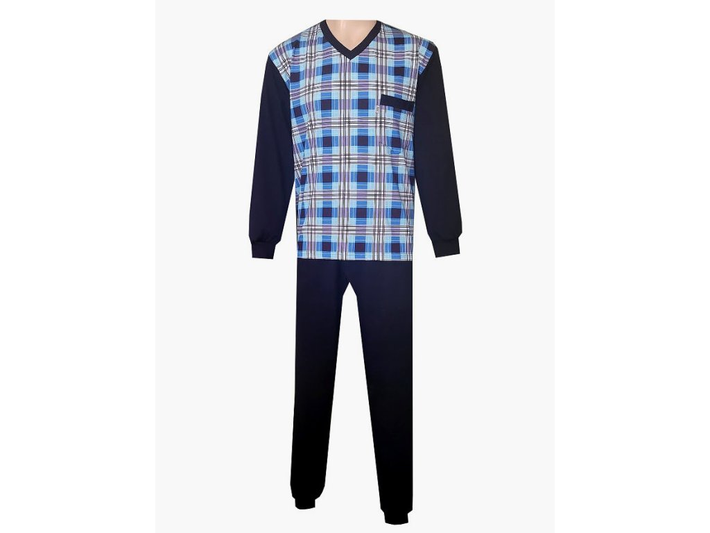 Pánské pyžamo úplet dlouhé to je kvalitní pánské pyžamo od firmy Foltýn. Moderní střih zaručující maximální pohodlnost a eleganci. Vrchní díl má výstřih do V. Kalhoty jsou volné. V pase opatřené gumou v tunýlku, která se dá vyměnit. Pánské pyžamo úplet dlouhé je vyrobeno z jemně česaného bavlněného úpletu ze 100 % bavlny. Tento kvalitní materiál je vzdušný a velice příjemný. Způsob ošetřování: praní na 40°C, žehlení.