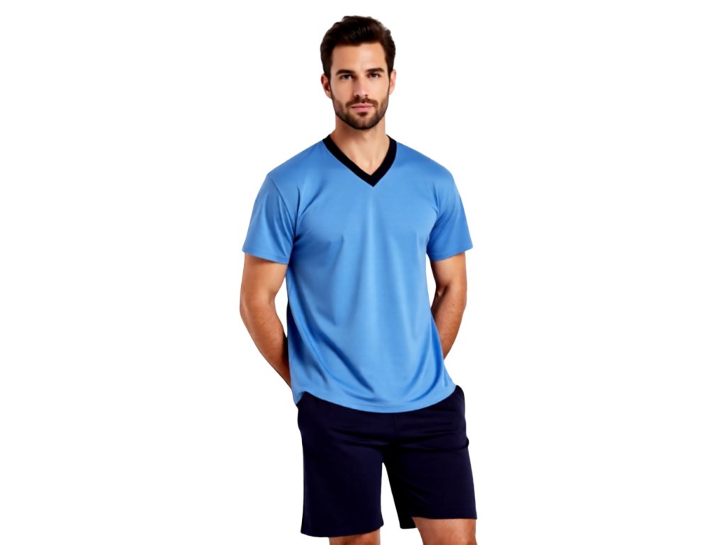 Pánské pyžamo krátké úplet to je kvalitní pánské pyžamo od firmy Foltýn. Moderní střih zaručující maximální pohodlnost a eleganci. Vrchní díl má výstřih do V. Kalhoty jsou volné. V pase opatřené gumou v tunýlku, která se dá vyměnit. Pánské pyžamo je vyrobeno z jemně česaného bavlněného úpletu ze 100 % bavlny. Tento kvalitní materiál je vzdušný a velice příjemný. Způsob ošetřování: praní na 40°C, žehlení.